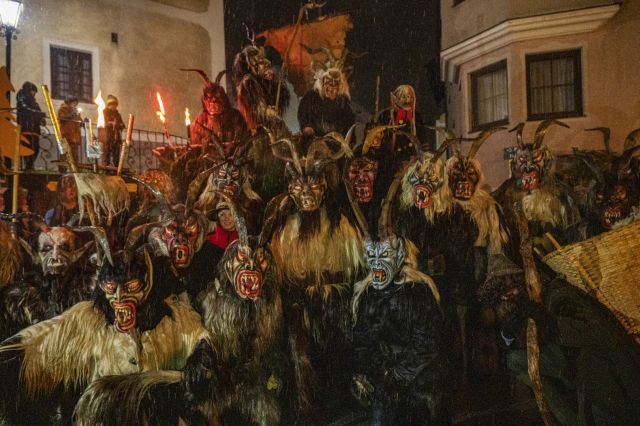 Hunderte Perchten aus allen Himmelsrichtungen laufen durch Feuer und Rauch über den idyllischen Ortsplatz von Steinbach, der sich zu dieser Zeit in einen brodelnden Hexenkessel verwandelt, und bieten ein Spektakel der Extraklasse.